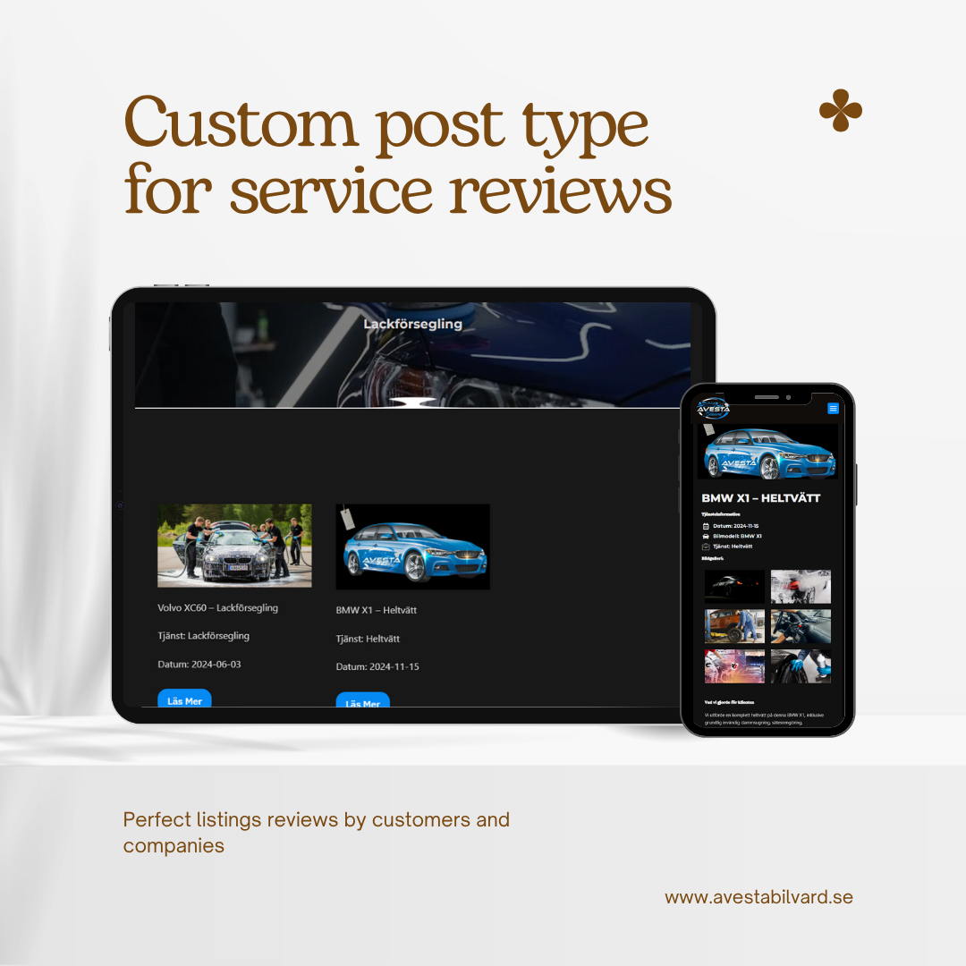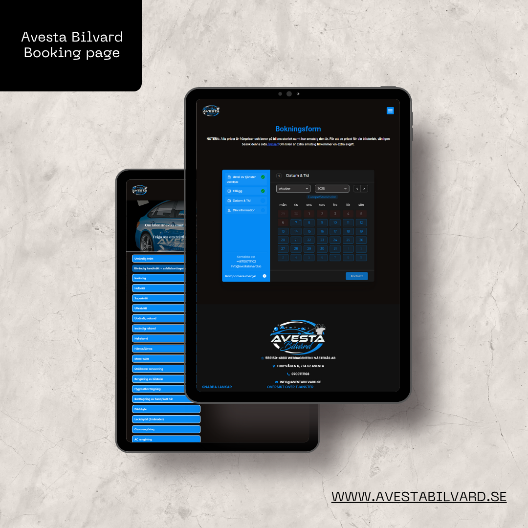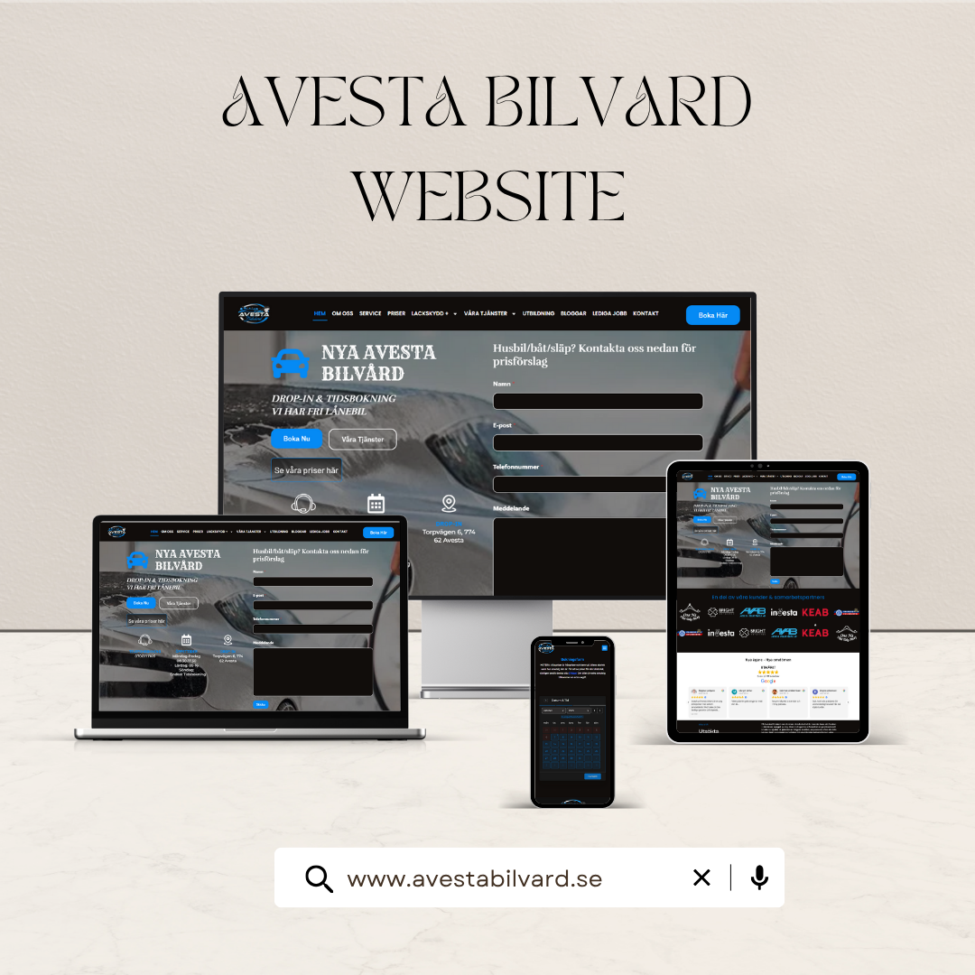 Avesta Bilvård is a car care and detailing service provider based in Avesta, Sweden. The goal of this project was to create a modern and user-friendly website that reflects the company’s professionalism and quality service. The design features clear service sections, engaging visuals, and a strong call-to-action flow that encourages bookings and inquiries. The site also integrates a booking features, local SEO optimization to ensure visibility in Avesta and nearby areas.