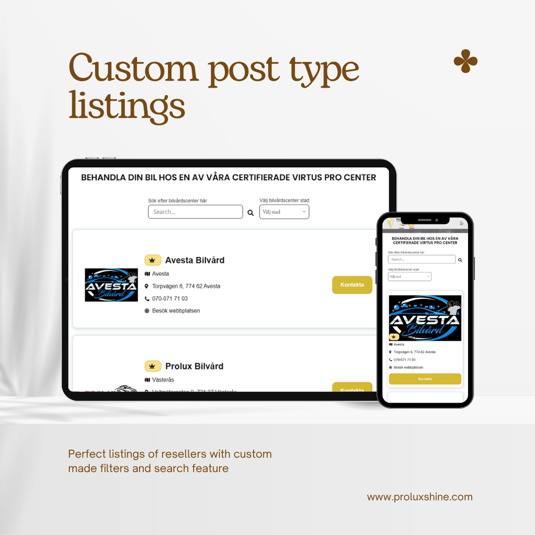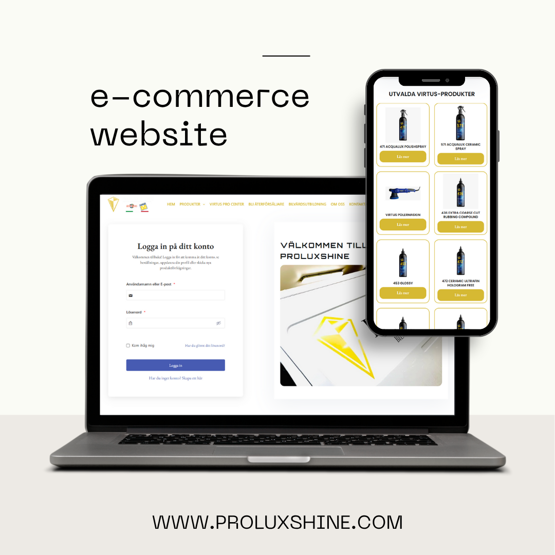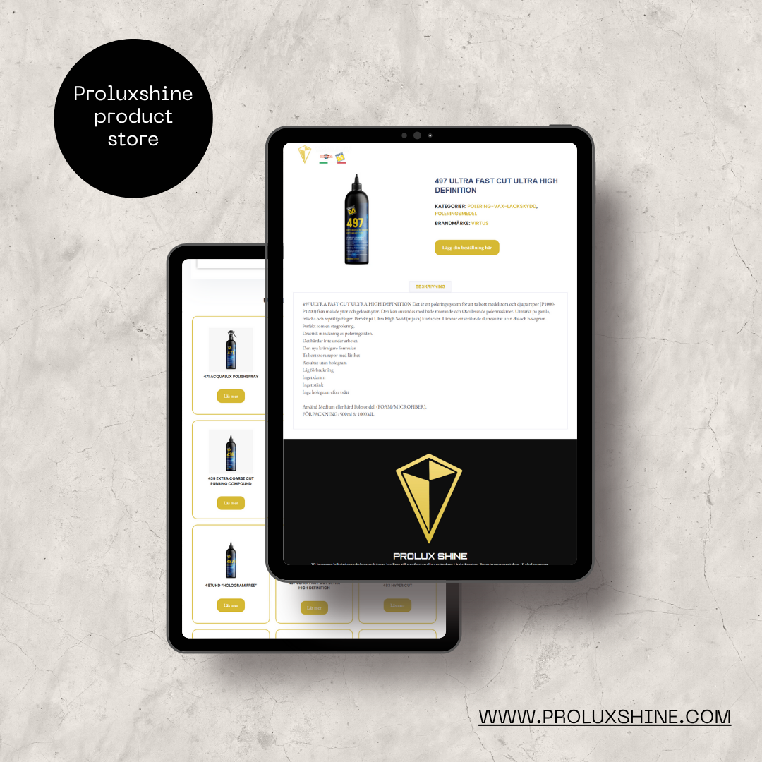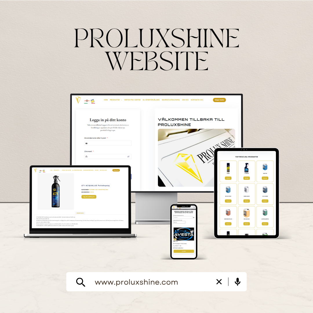 Prolux Shine is a Swedish cleaning and detailing brand offering high-quality products and professional services for cars, homes, and businesses. The website combines a sleek e-commerce shop with an elegant service presentation, providing a seamless user experience across devices. The design emphasizes clarity, modern aesthetics, and credibility — helping users navigate between purchasing products and booking services effortlessly.